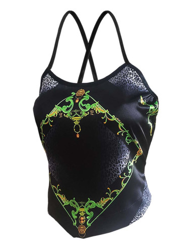 Realizzato in tessuto tecnico leggero e traspirante, offre comfort e vestibilità, senza rinunciare all’impatto visivo: la stampa a motivo diamantato ad alta definizione dona profondità, luce e un’estetica audace, perfetta per look decisi o sofisticati.